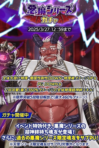 - 「悪魔シリーズガチャ」開催、新魂友「テシュマ」登場
