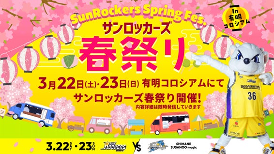 3月22日(土)と23日(日)、有明コロシアムで開催されるサンロッカーズ渋谷vs島根スサノオマジックのホームゲーム「サンロッカーズ春祭り」にて、セガサミーグループエンタメブースが登場します。