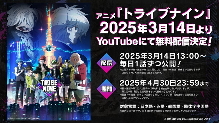- アニメ『TRIBE NINE』全12話無料配信開始(2025年3月14日~4月30日)