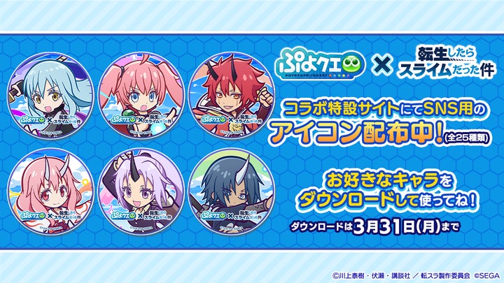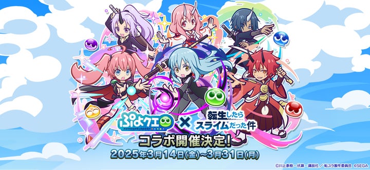 セガは、スマホ向けパズルRPG『ぷよぷよ!!クエスト』において、TVアニメ『転生したらスライムだった件』とのコラボイベントを2025年3月14日より開催する。