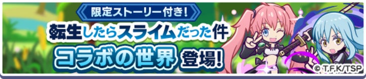 ログインボーナスとして★6リムル=テンペストが貰え、コラボガチャでは★7へ変身可能なリムルやミリムなど、複数のキャラクターが登場する。