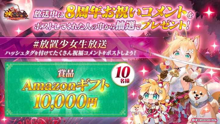 スマホアプリの美少女RPG『放置少女〜百花繚乱の萌姫たち〜』8周年を記念した生放送が、2025年3月16日(日)20時より配信されます。