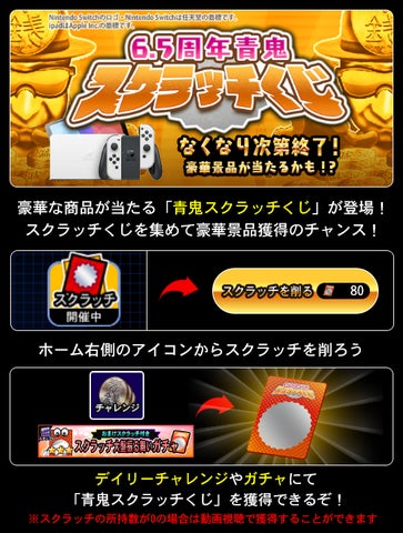 - Nintendo SwitchやiPadが当たる「青鬼スクラッチ」キャンペーン開催