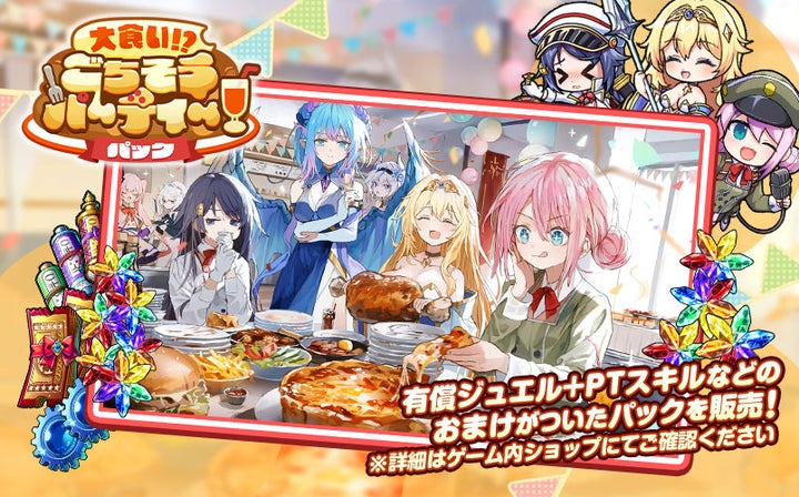 - 有償ジュエル購入で、無償ジュエルや限定装備など入手可能なパック販売
