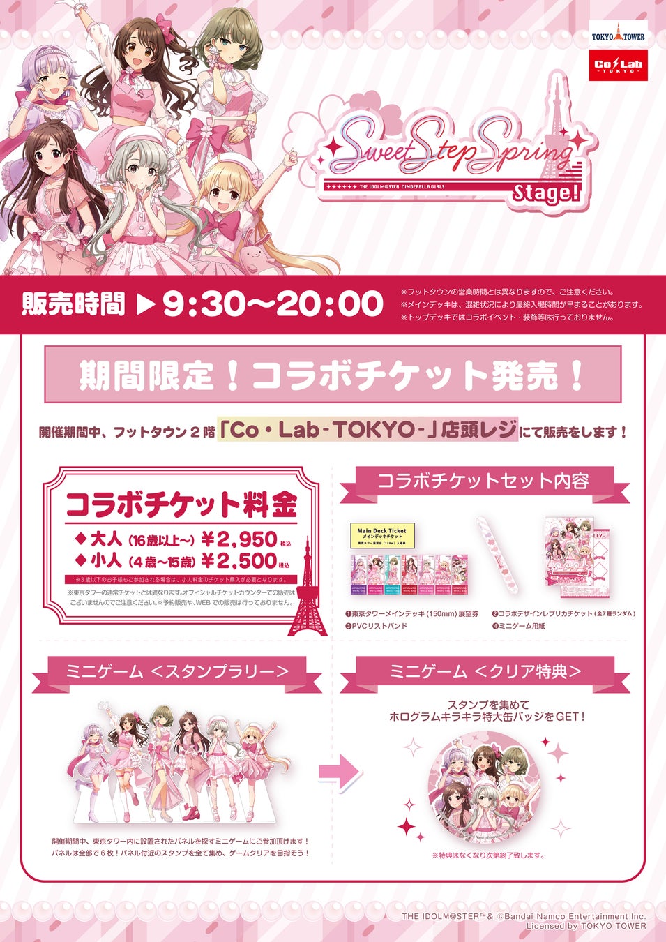 東京タワー内のCo・Lab-TOKYO-にて、2025年3月22日から4月24日まで『アイドルマスター シンデレラガールズ』とのコラボイベント『Sweet Step Spring Stage!』が開催されます。