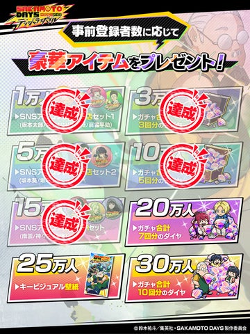 - 事前登録者数に応じてゲーム内アイテムやガチャダイヤプレゼント