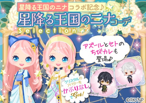 今回のコラボでは、ログインボーナス、ミッションキャンペーン、コラボガチャ「星降る王国のニナコーデSelection」、イベント「ちびカレコレクション~星降る王国のニナ~」が実施されます。