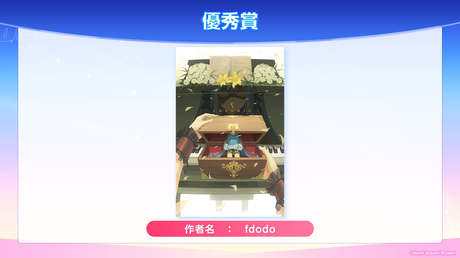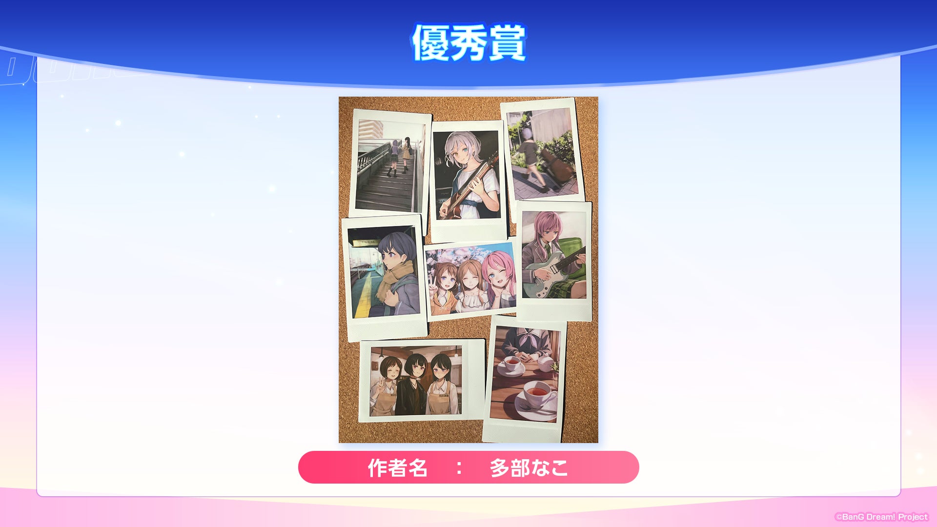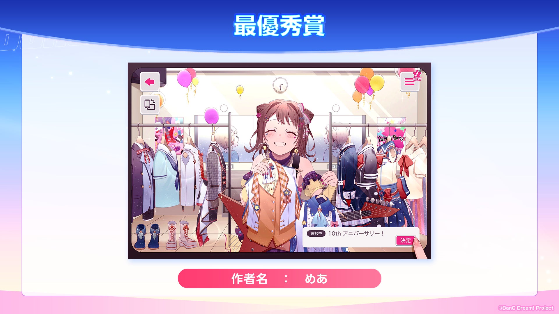 最優秀賞作品は、バンドリ!10周年を記念し、歴代の衣装やアプリならではの表現を取り入れた力作で、審査員から高い評価を得ています。