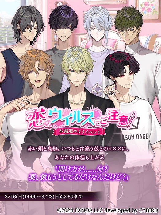 DMM GAMESのオトナの女性向け恋愛ゲーム「夢幻楼と眠れぬ蝶」で、3月16日~23日にゲーム内イベント「恋のウイルスにご注意」とガチャ「恋の処方箋ガチャ」が開催されます。