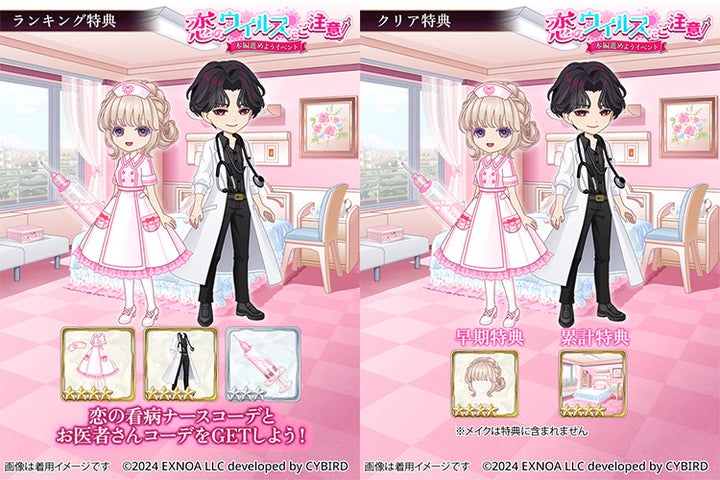 - 「夢幻楼と眠れぬ蝶」でゲーム内イベント「恋のウイルスにご注意」と「恋の処方箋ガチャ」開催
