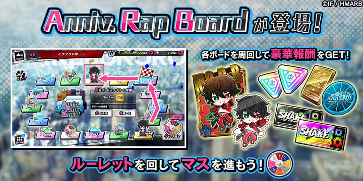 Anniv. Rap Boardでは、すごろく形式で報酬を獲得できるほか、ちびキャラの会話も楽しめる。