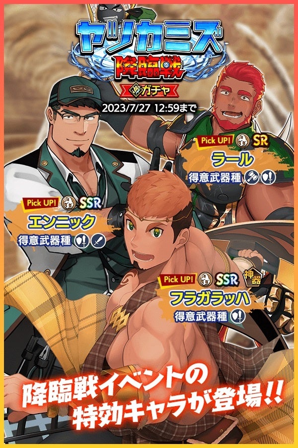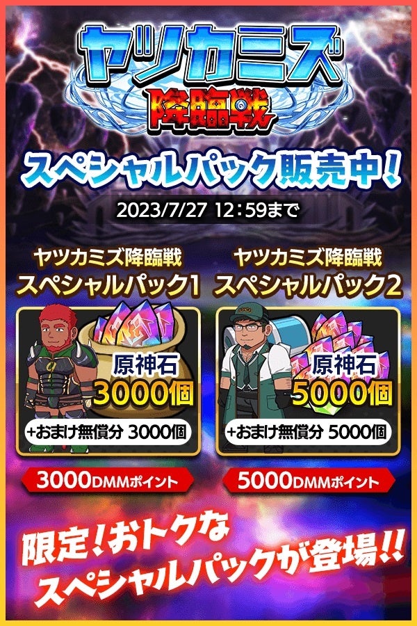また、新キャラクターや神器が手に入るガチャや期間限定パックも登場しています。