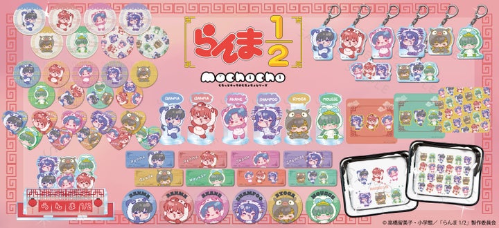 - mochochoシリーズのミニキャラグッズ(アクリルスタンド、クリアポーチ、缶バッジなど)