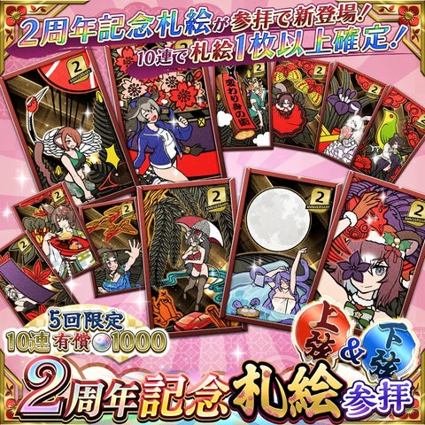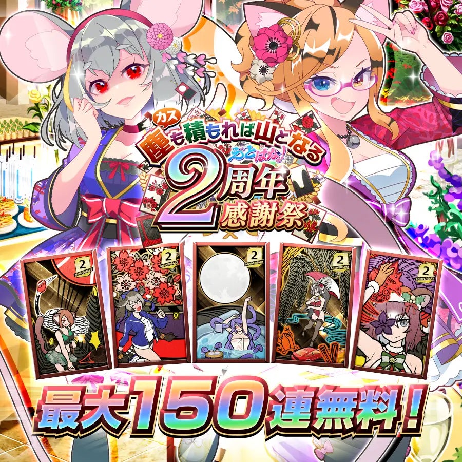 スマートフォン/PC向けオンライン花札ゲーム『えとはなっ!~干支っ娘・花札バトル~』が2周年を迎え、3月18日より「2周年大感謝祭!」を開催。