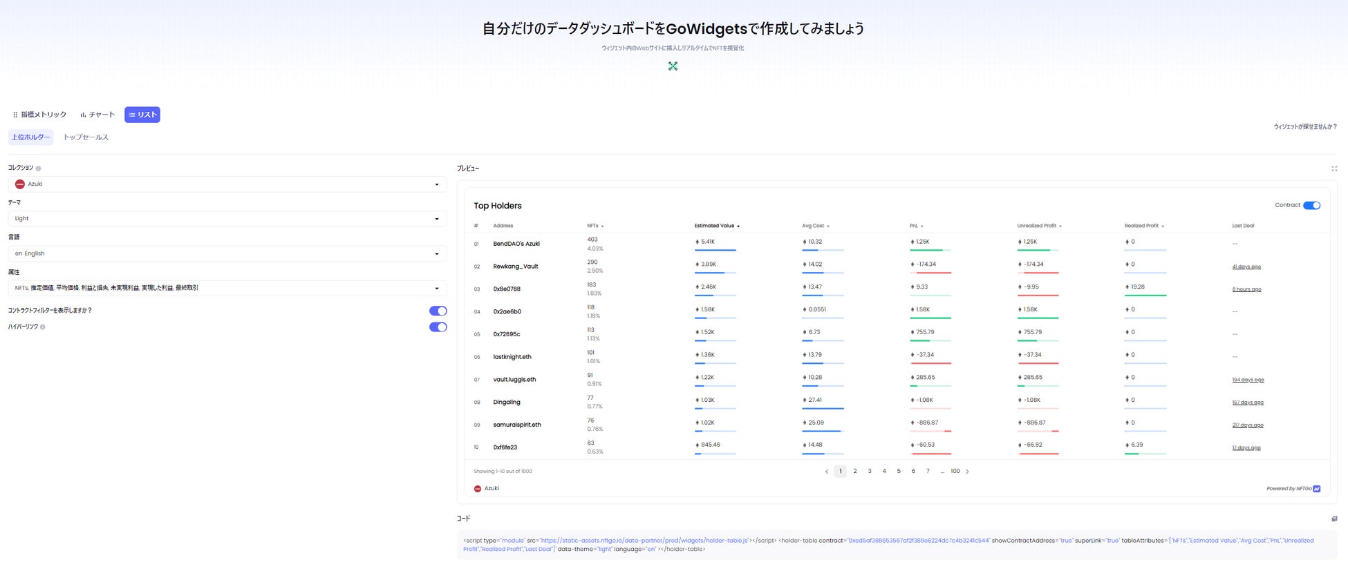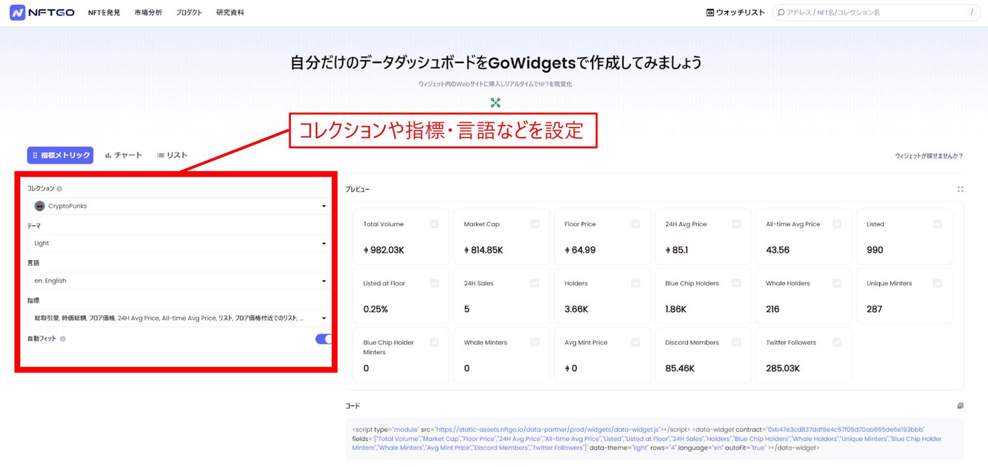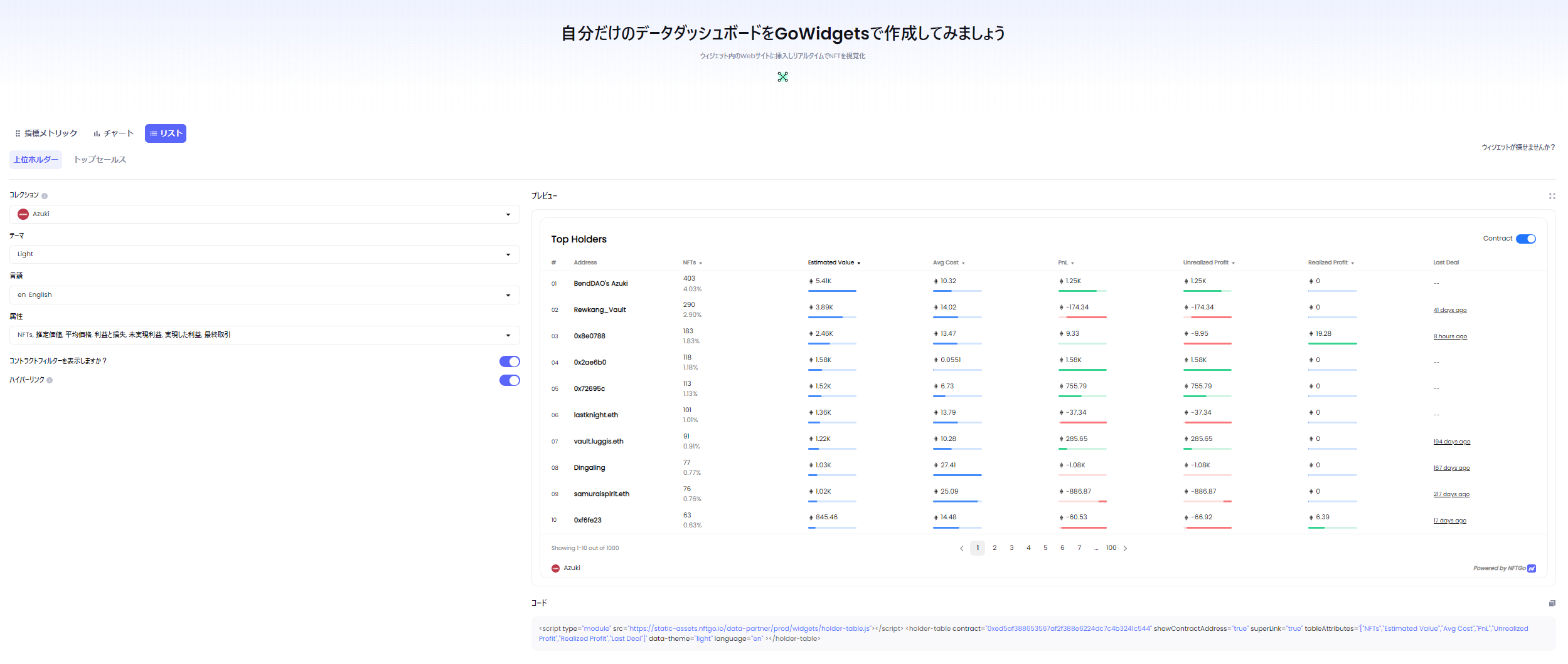 【GoWidgetにアクセス:https://nftgo.io/ja/products/widget】