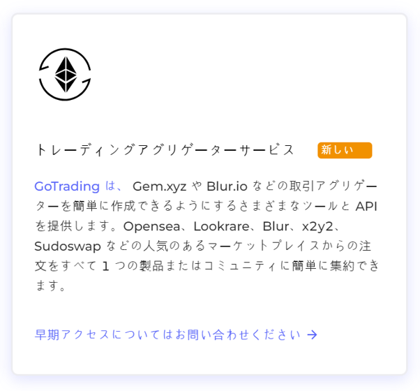 新機能として、GoWidget、Sweeps、トレーディングアグリゲーターAPIをリリースし、NFTの分析や購入に便利に使えるようになった。