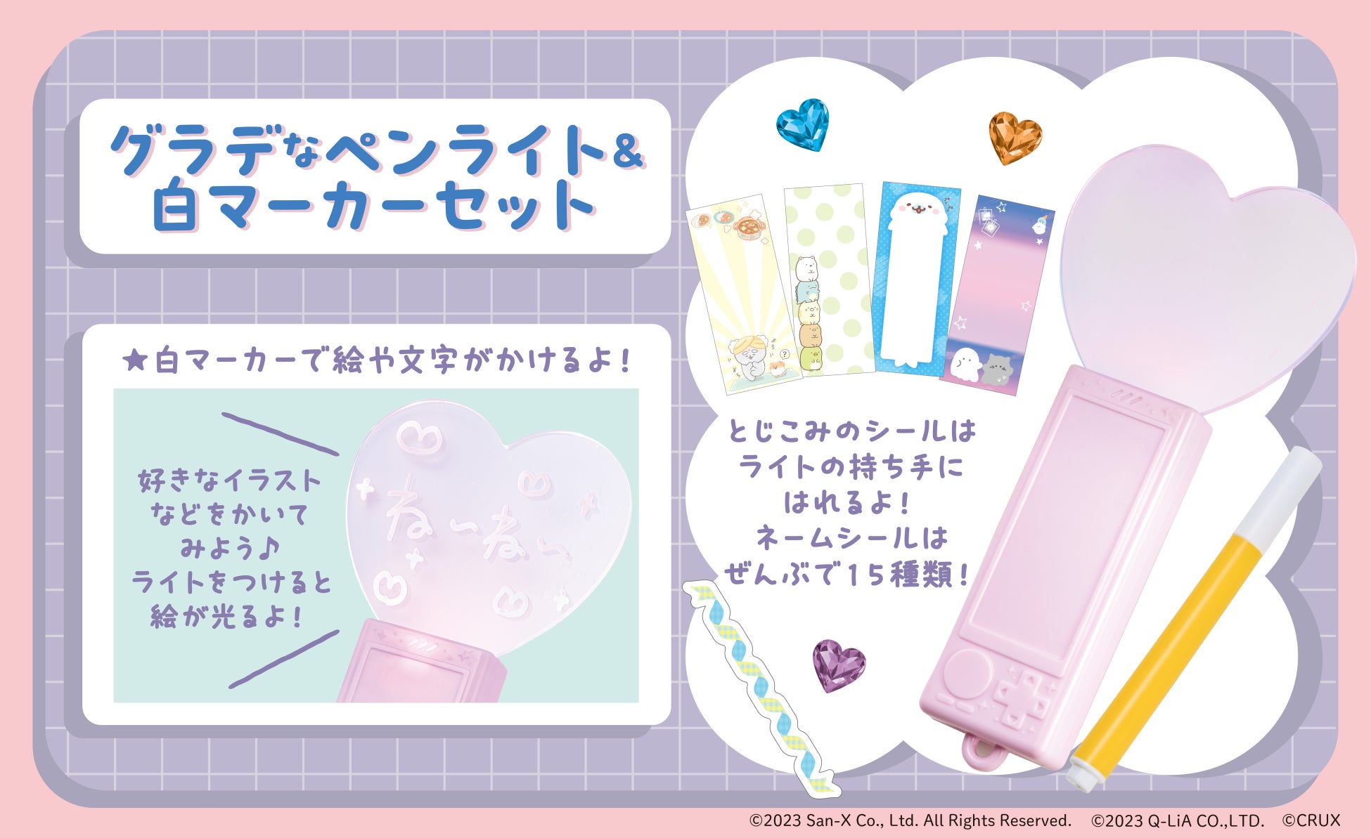 - ふろくの「グラデなペンライト&白マーカーセット」にはキャラネームシールがついている