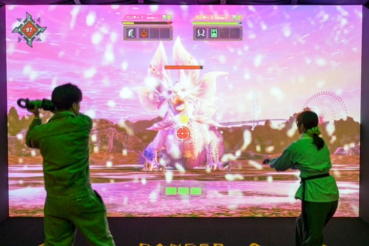 このアトラクションは、アクションコントローラーとトラッキング端末を使って大型モンスターと戦う体験型コンテンツで、ハンターランク制を採用。