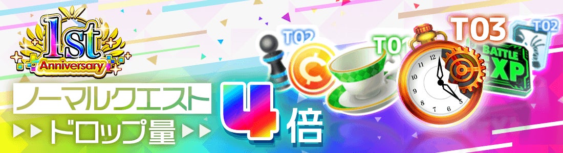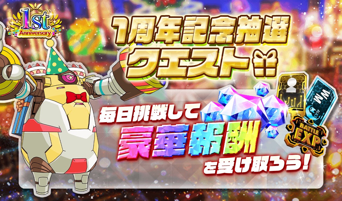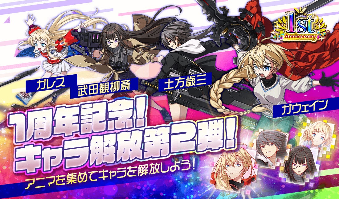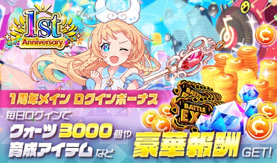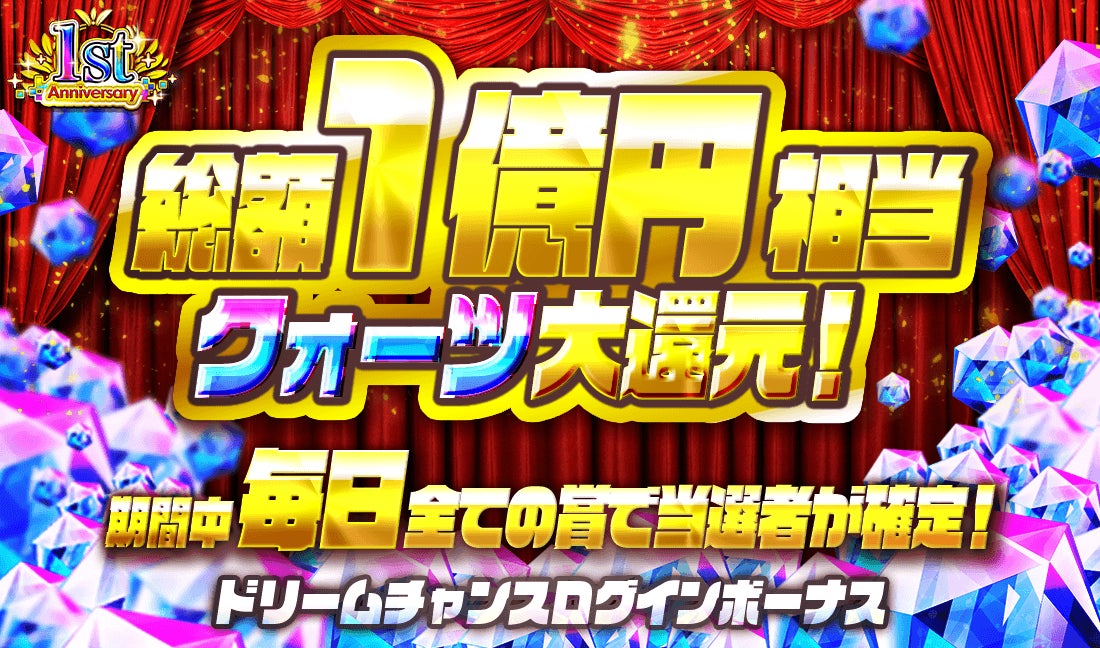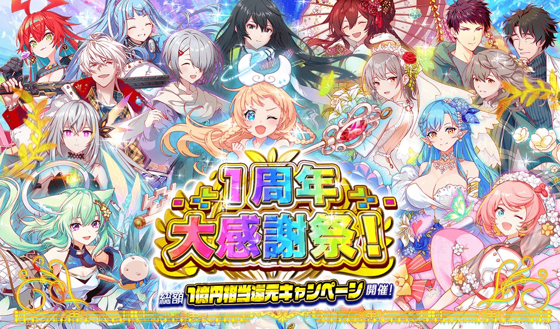- 1周年大感謝祭!メインステージ、ガチャ、クォーツ還元キャンペーン、新フェス限定キャラクター、アニバーサリーフェス、ログインボーナス、ストーリーイベント