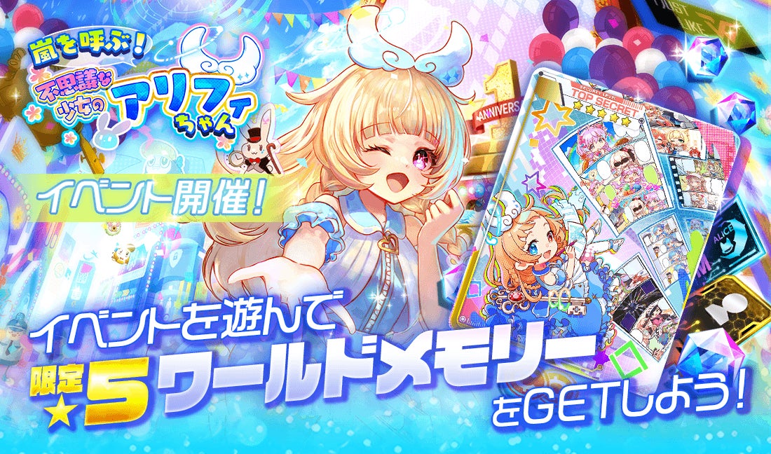 ワンダープラネット株式会社は、スマートフォン向けゲーム『アリスフィクション』の1周年を祝して、「1周年大感謝祭!メインステージ」を開催します。