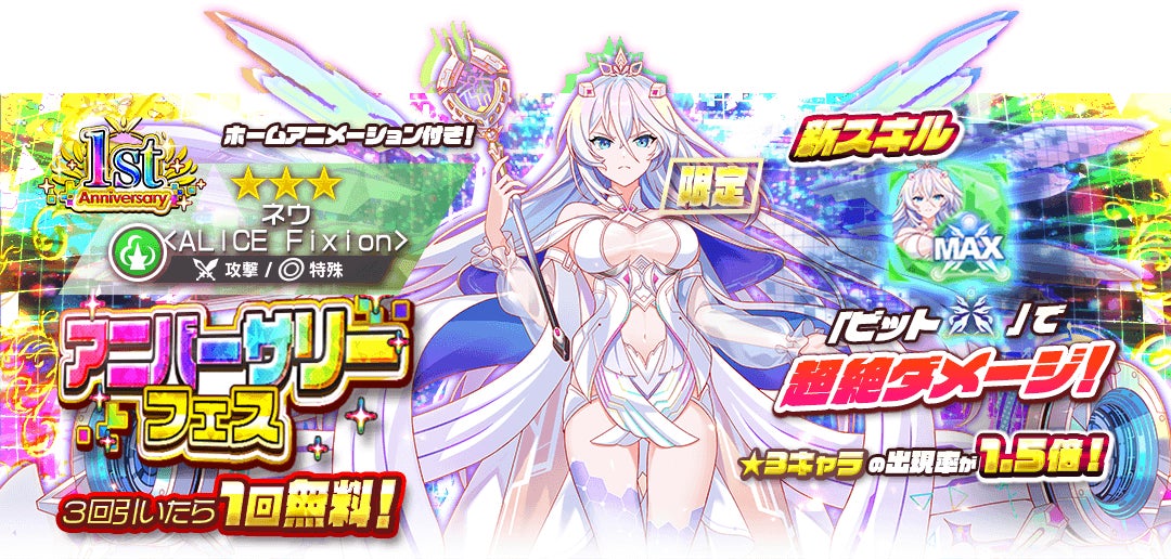 さらに、「アニバーサリーフェス」では新フェス限定キャラクター「★3 ネウ〈ALICE Fixion〉」をピックアップします。