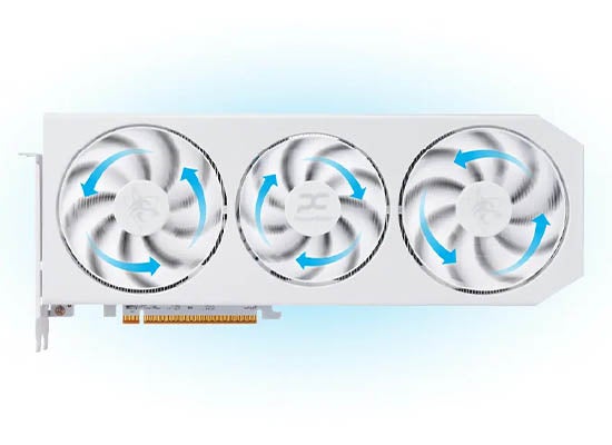 トリプルファンの採用で静音性と冷却性能に優れ、耐久性の高い日本メーカー製ダブルボールベアリングファン、セミファンレス機能も搭載。