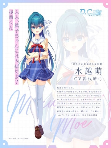 ブシロードは、2002年発売のゲーム『D.C.~ダ・カーポ~』のフルリメイク作品『D.C. Re:tune ~ダ・カーポ~ リチューン』のヒロイン4名(水越萌、水越眞子、天枷美春、鷺澤頼子)のキャラクター情報とキャストを公開しました。