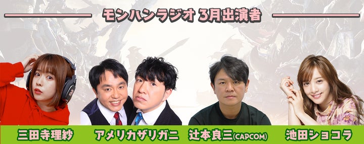出演はアメリカザリガニの平井さん、辻本良三MHシリーズプロデューサー、ゲストMCに池田ショコラさん、三田寺理紗さん、コーナーゲストにアメリカザリガニの柳原哲也さん。