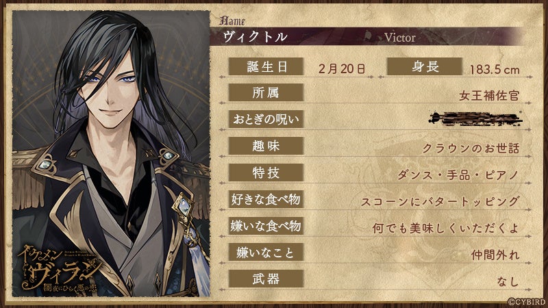 - 『イケメンヴィラン 闇夜にひらく悪の恋』でヴィクトル(CV:高橋広樹)の本編ストーリー配信開始