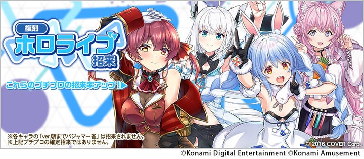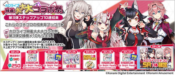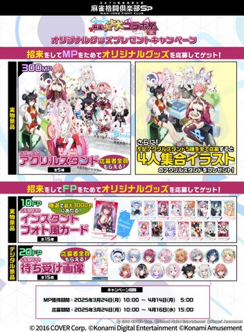 KONAMIは、モバイル麻雀ゲーム『麻雀格闘倶楽部Sp』において、ホロライブとのコラボイベント「ホロライブ麻雀大大大コラボ祭 第3弾」を3月24日から開催します。