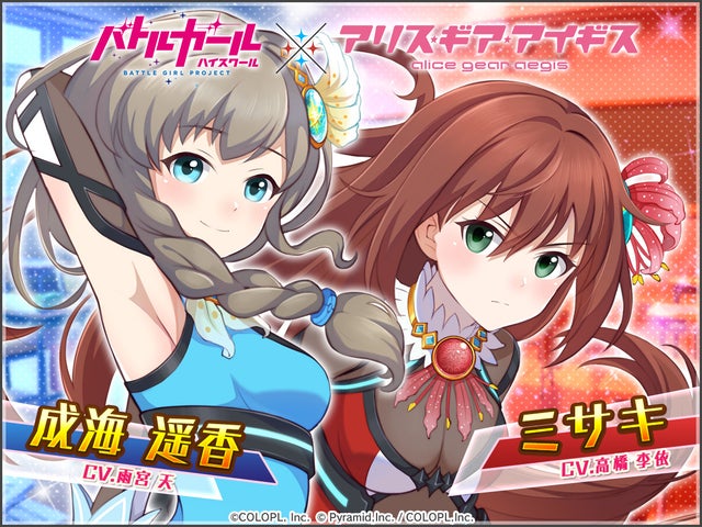 このコラボイベント『神樹祭編』では、『バトルガール ハイスクール』のキャラクターである成海遥香(CV:雨宮天)とミサキ(CV:高橋李依)がプレイアブルキャラクターとして登場します。