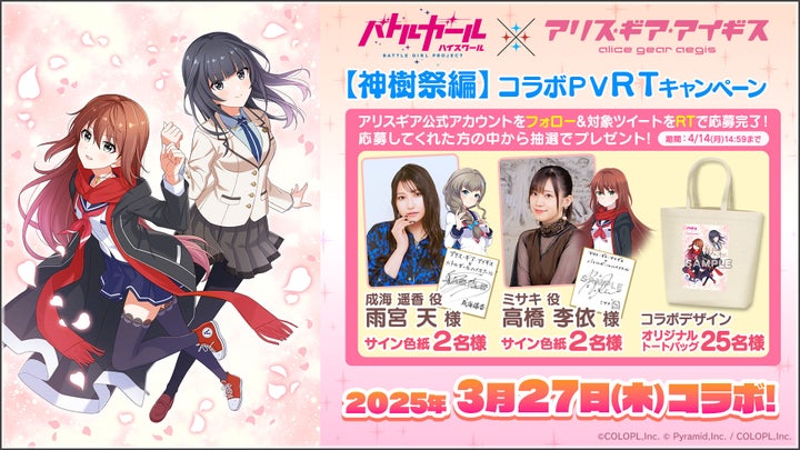 コロプラは、スマートフォン向けゲーム『アリス・ギア・アイギス』において、『バトルガール ハイスクール』とのコラボイベントを2025年3月27日15時より開催することを発表しました。