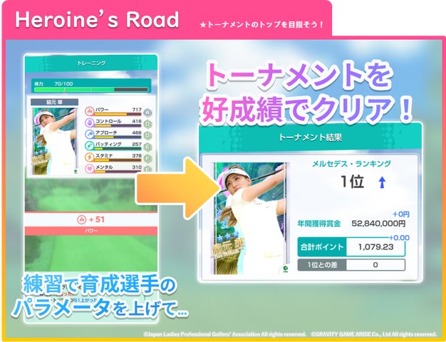 グラビティゲームアライズ株式会社は、JLPGA公認初のゲームアプリ『女子プロゴルフ ヒロインコレクション』を2025年3月25日にリリースしました。