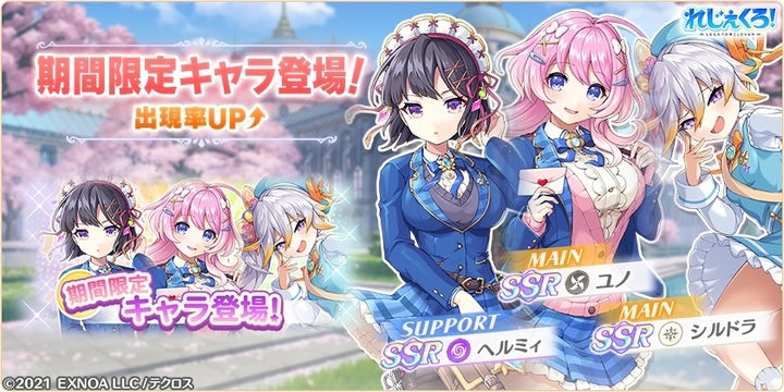 DMM GAMESの『れじぇくろ!~レジェンド・クローバー~』で、初の衣装コンテスト1位作品「学生服」コスチュームのユノ、シルドラ、ヘルミィが新登場。