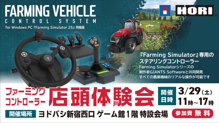 - 3月29日、ヨドバシカメラ新宿西口店で『Farming Simulator』専用コントローラー体験会開催