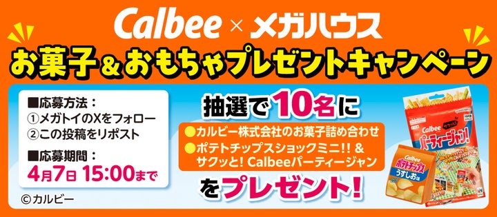 両商品の発売を記念して、メガハウス公式Xアカウントをフォロー&リポストで抽選で10名にカルビーのお菓子詰め合わせなどが当たるキャンペーンも実施中です。