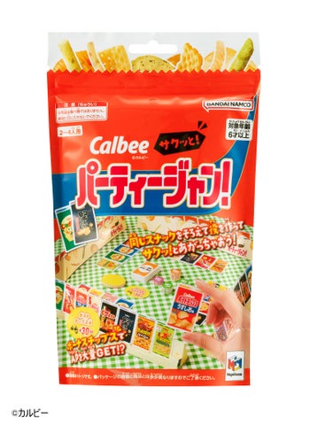 同時に、カルビーの人気スナック菓子のパッケージデザインを使った絵合わせゲーム『Calbee サクッと!パーティージャン』も2025年3月中旬に発売(2,178円)。