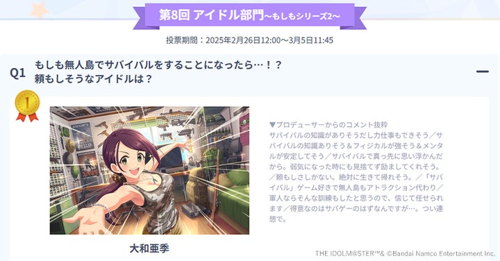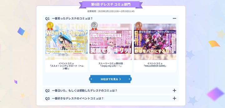 • 楽曲、アイドル、コミュなど10テーマの投票結果と上位作品の詳細を特設サイトで公開