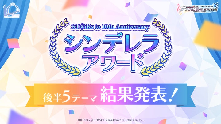 バンダイナムコエンターテインメントは、『アイドルマスター シンデレラガールズ スターライトステージ』(デレステ)の10周年企画『ST@iRs to 10th Anniversary』の一環として、シンデレラアワードの結果を発表しました。