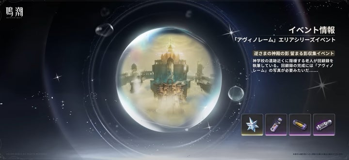新エリアとして天地が逆転した【アヴィノレーム神学校】と【ベオ海域】が追加され、新キャラクター「カンタレラ」や復刻キャラ「ツバキ」「ショアキーパー」、新共鳴者「漂泊者・気動」が登場します。