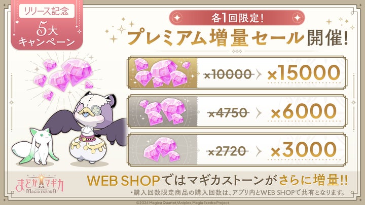 さらに、公式WEB SHOPも開設され、マギカストーンやパック商品を購入できます。