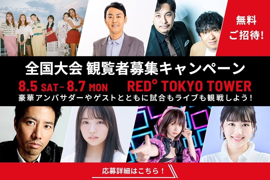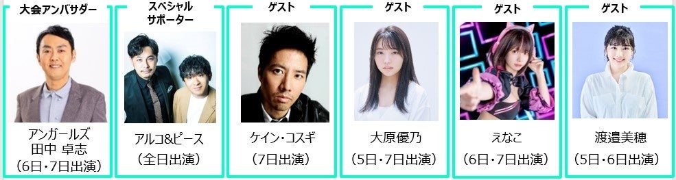 アンガールズ田中卓志さんやアルコ&ピースさんなどが大会のサポーターとして参加し、ケイン・コスギさんやえなこさんなどのゲストも登場します。