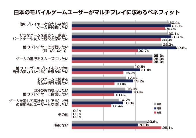 430ページに渡り、2024年の世界モバイルゲーム市場規模(12兆4103億円)、プレイ頻度の上昇とプレイ時間の減少、マルチプレイにおけるユーザーニーズ(共闘・親交)などの最新データと分析結果を掲載。