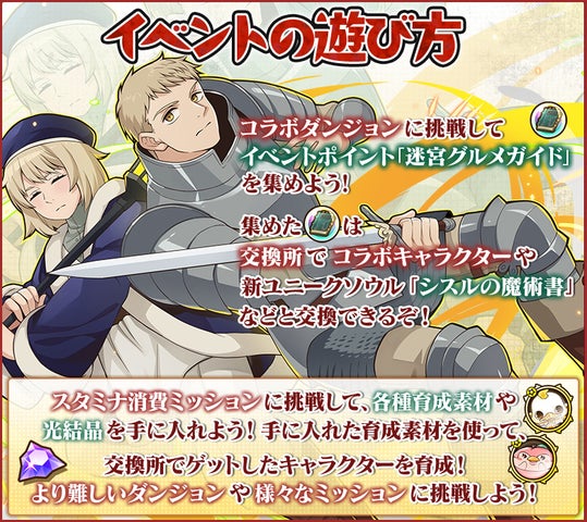 スマホゲーム『サモンズボード』にて、TVアニメ『ダンジョン飯』とのコラボイベントが2025年3月27日~4月10日まで開催されます。