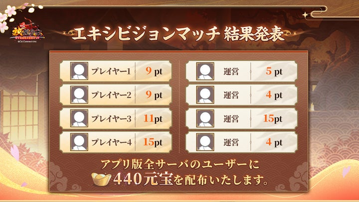 選手VS運営の特別企画では、運営チームが初戦を制する波乱もありましたが、選手チームが逆転勝利し、全サーバーに元宝がプレゼントされました。