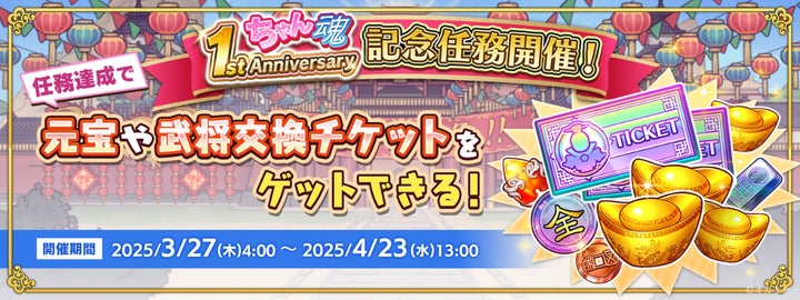 - 「ちゃんごくし!結魂しよう」1周年記念キャンペーン開催(2025年3月26日~4月30日)