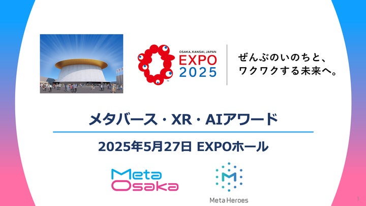 2025年5月27日、EXPO2025大阪・関西万博にて、株式会社Meta Osakaと株式会社Meta Heroesが共催する「メタバース・XR・AIアワード」が開催されます。