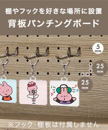 パンチングボードとカードスタンドを備え、キーホルダーやトレカなどを自由に飾ることが可能です。