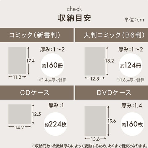 奥行き17cmのスリム設計ながら、コミック160冊など大量収納を実現。