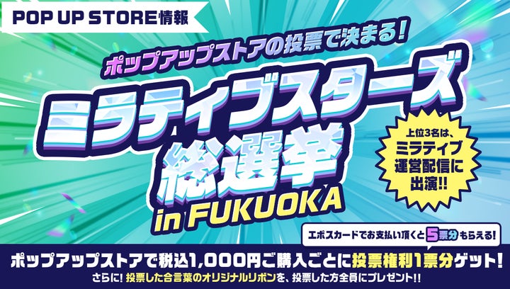 株式会社ミラティブは、博多マルイにて3月29日(土)~4月6日(日)の期間限定でMirrativのポップアップストアを開催します。